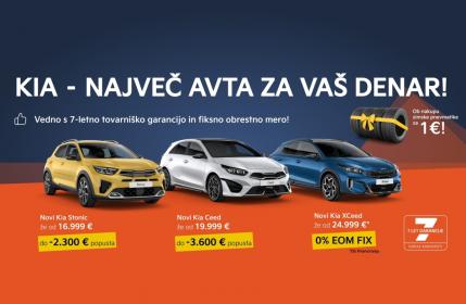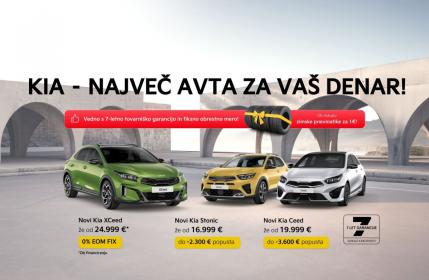 Vedno s 7-letno tovarniško garancijo in fiksno obrestno mero! Ob nakupu vozil Kia Stonic, Ceed, Ceed Sportswagon ali XCeed prejmete zimske pnevmatike za 1 €!